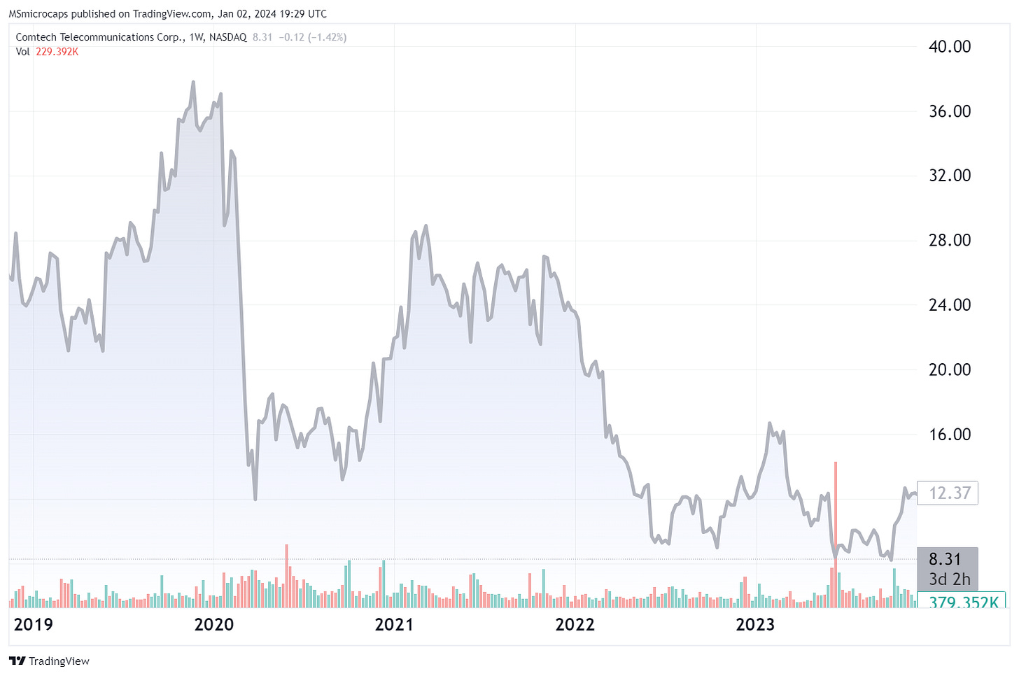 CMTL had an amazing multi-bagger run from 2002 to 2007. The stock rose from the $3.00 area to hit a high of $55.00 on the heels of sales and earnings per share growing in a straight line ( sales $119M to $145M; EPS from $0.53 to $2.42). Since then, sales have been range bound, between $500M and $700M and EPS has exhibited volatility, although most positive.