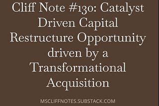 Cliff Note #130: Catalyst Driven Capital Restructure Opportunity driven by a Transformational Acquisition
